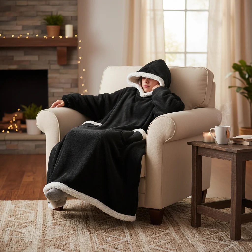 Escape the winter chill and transform your home into a personal sanctuary. This oversized, ultra-soft hoodie blanket is your ultimate cozy companion for endless comfort.