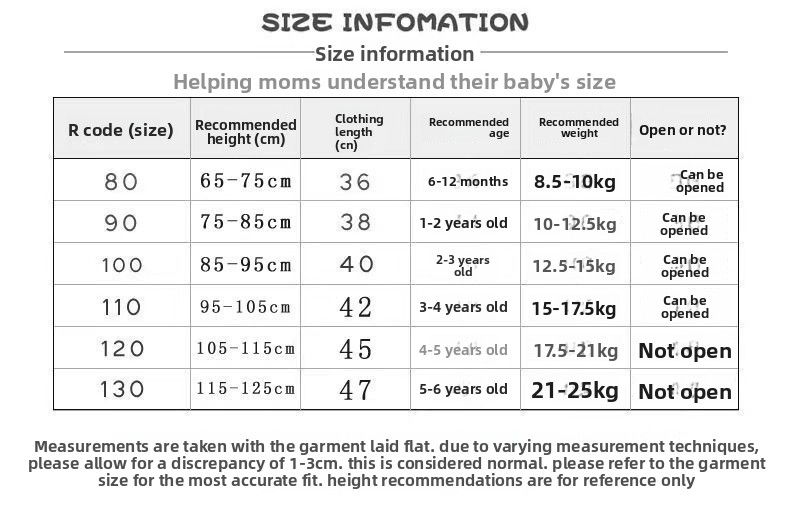 Sizes: 80cm, 90cm, 100cm, 110cm, 120cm (height-based)