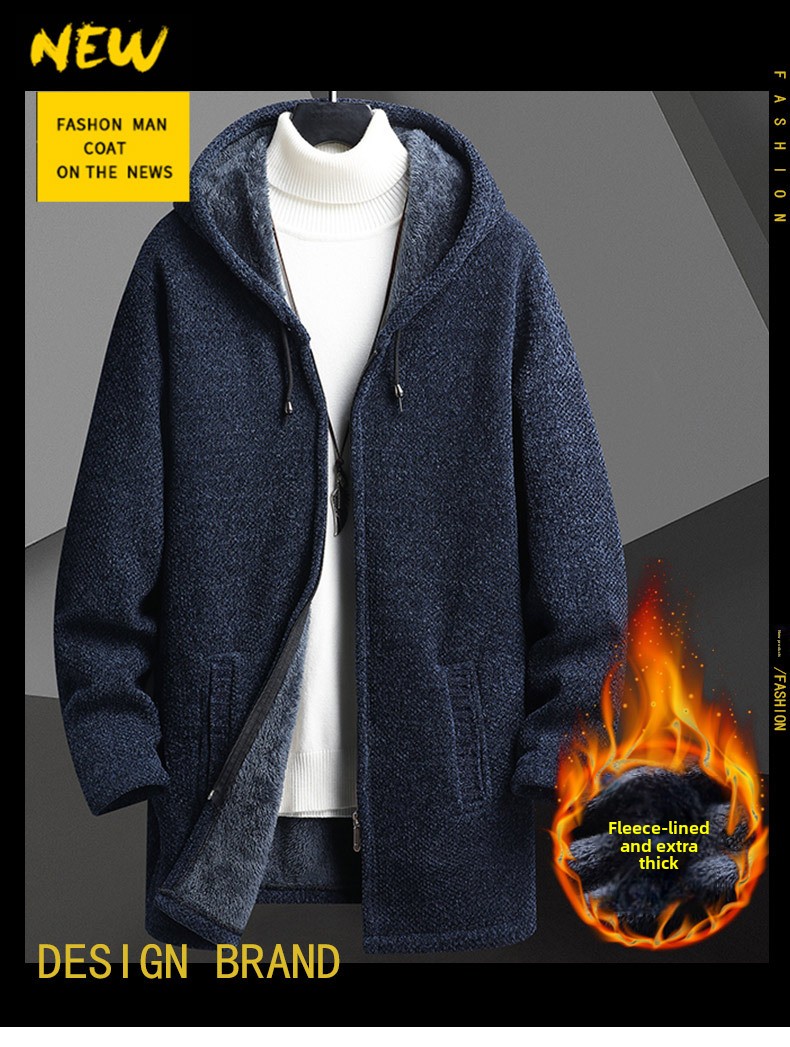 Men's Fleece-Lined Hooded Knit Cardigan